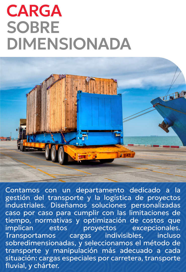Contamos con un departamento dedicado a la gestión del transporte y la logística de proyectos industriales. Diseñamos soluciones personalizadas caso por caso para cumplir con las limitaciones de tiempo, normativas y optimización de costos que implican estos proyectos excepcionales.